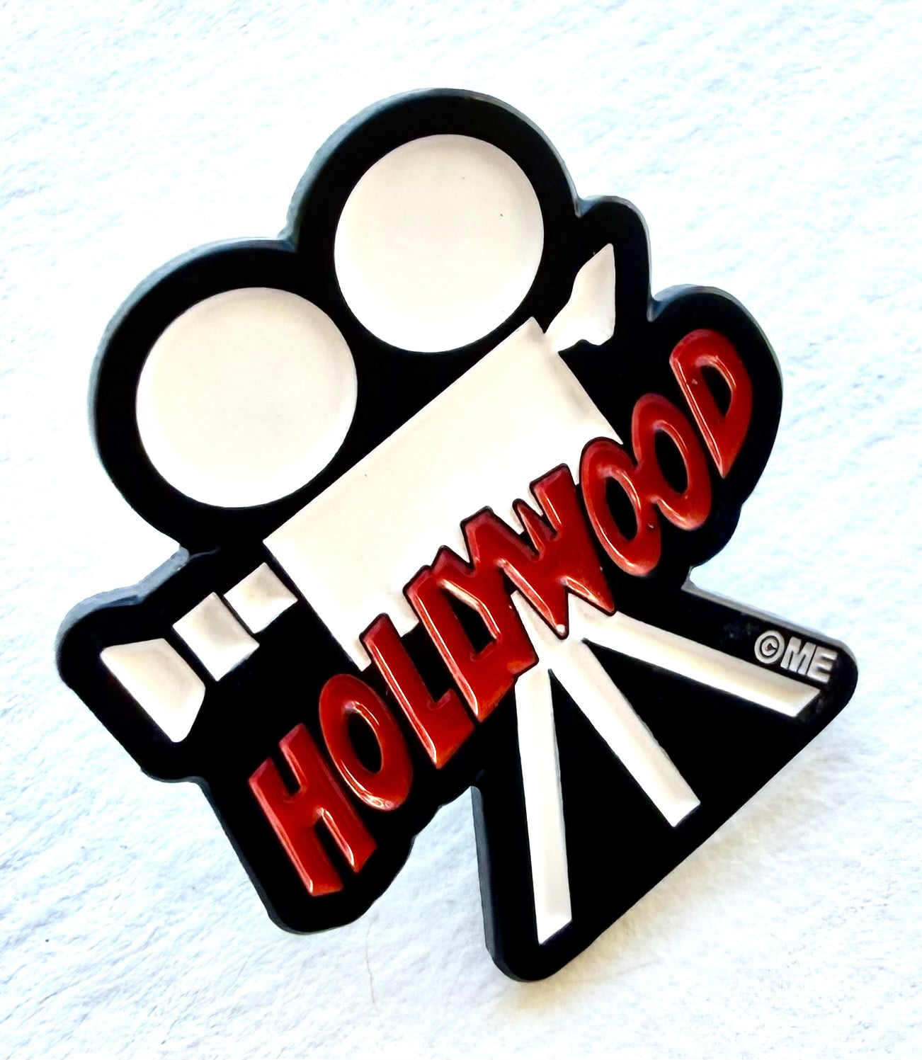 3.5" x 2.5" metal Los Angeles Magnet with Hollywood Camera artwork by Mary Ellis. Our magnets feature a glossy finish and strong full size magnetic backing.