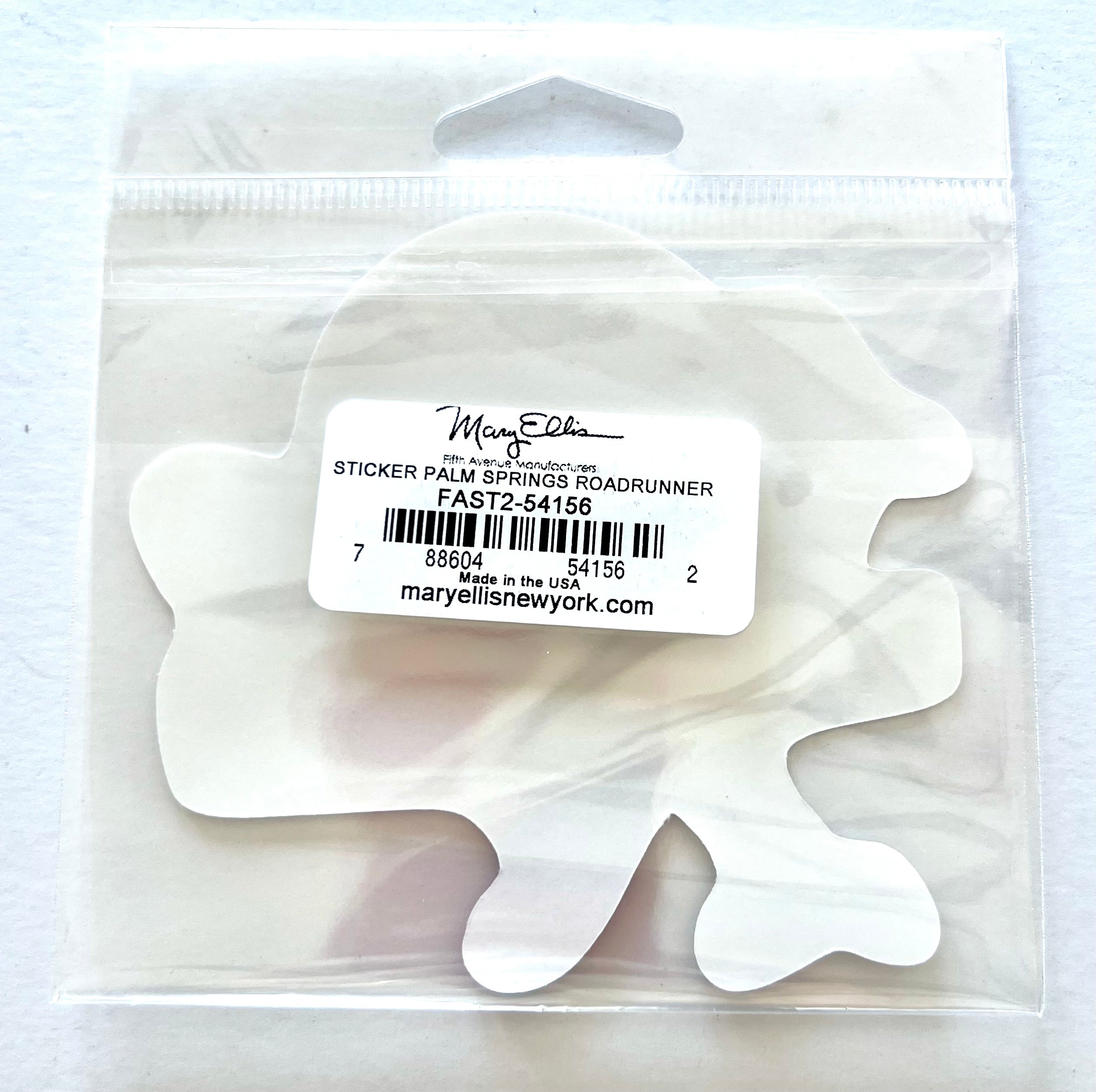 Palm Springs Roadrunner Giant 4" Sticker with bright and glossy artwork by artist Mary Ellis. This big sticker makes a perfect collectible Palm Springs California souvenir gift. Perfect to stick on a water bottle, notebook, or wherever you can imagine! ...