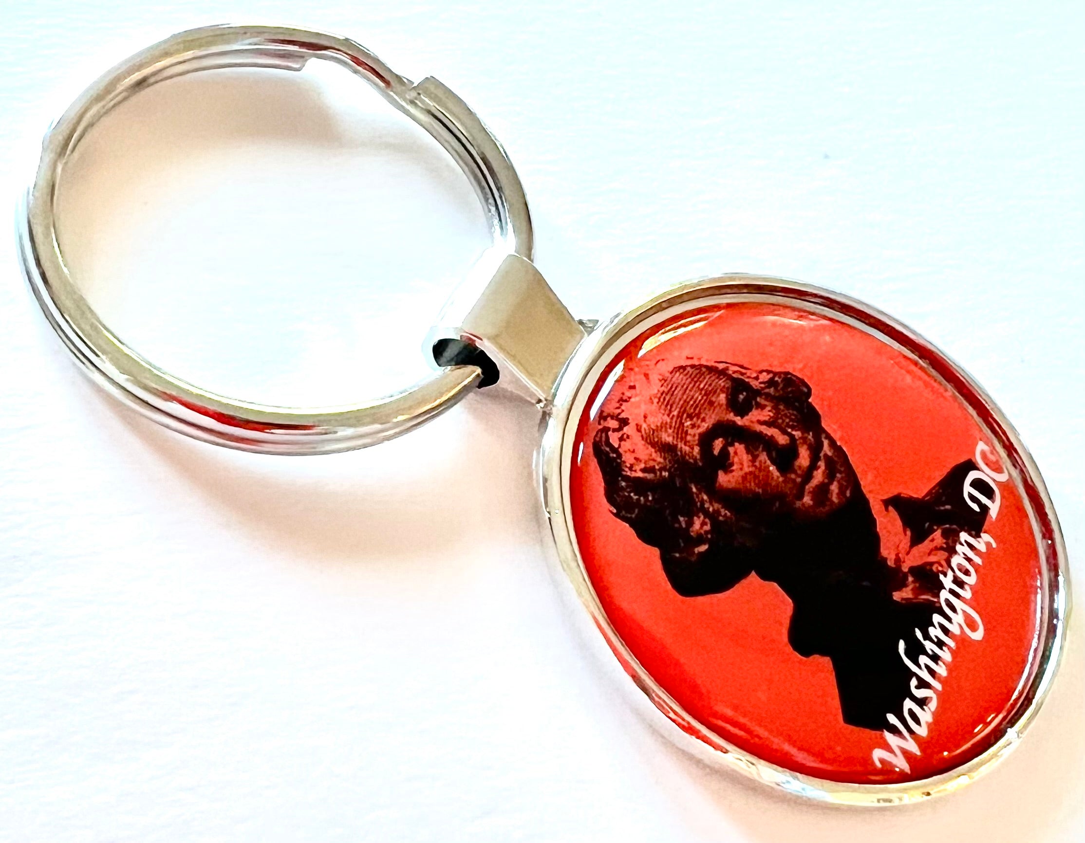Washington DC George Washington Keychain with artwork created by artist Mary Ellis. This metal keychain measures 1.25 inches by 2.5 inches and features a hard resin dome finish and shiny reflective chrome metal backing. Made in the USA. Make a...
