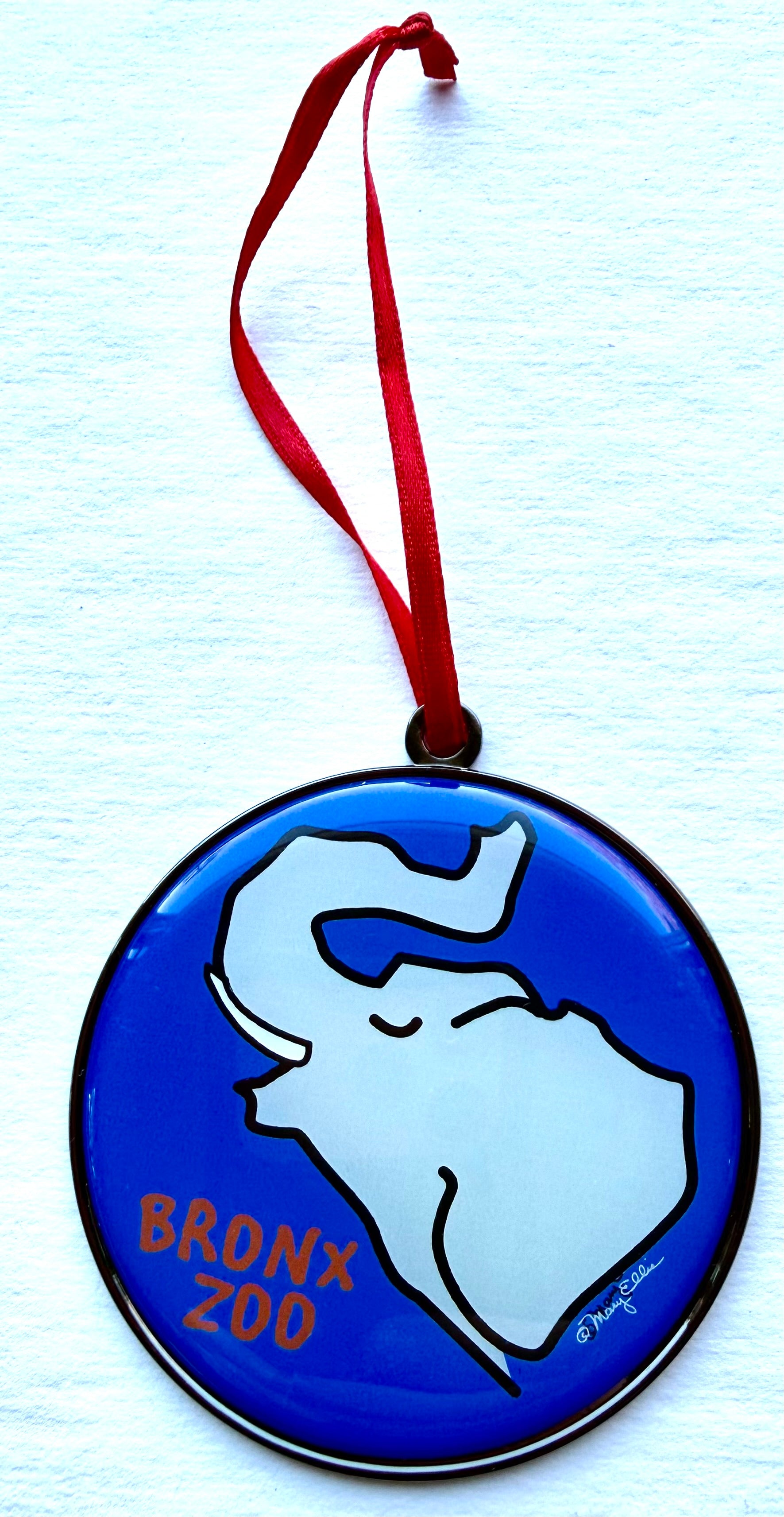 2.5" dome Custom Zoo Christmas ornament created by Mary Ellis featuring customizable Elephant Zoo artwork. This ornament features a resin dome over brilliantly colored original artwork with a reflective chrome backing. It comes with an attached red ribbon for hanging. ...