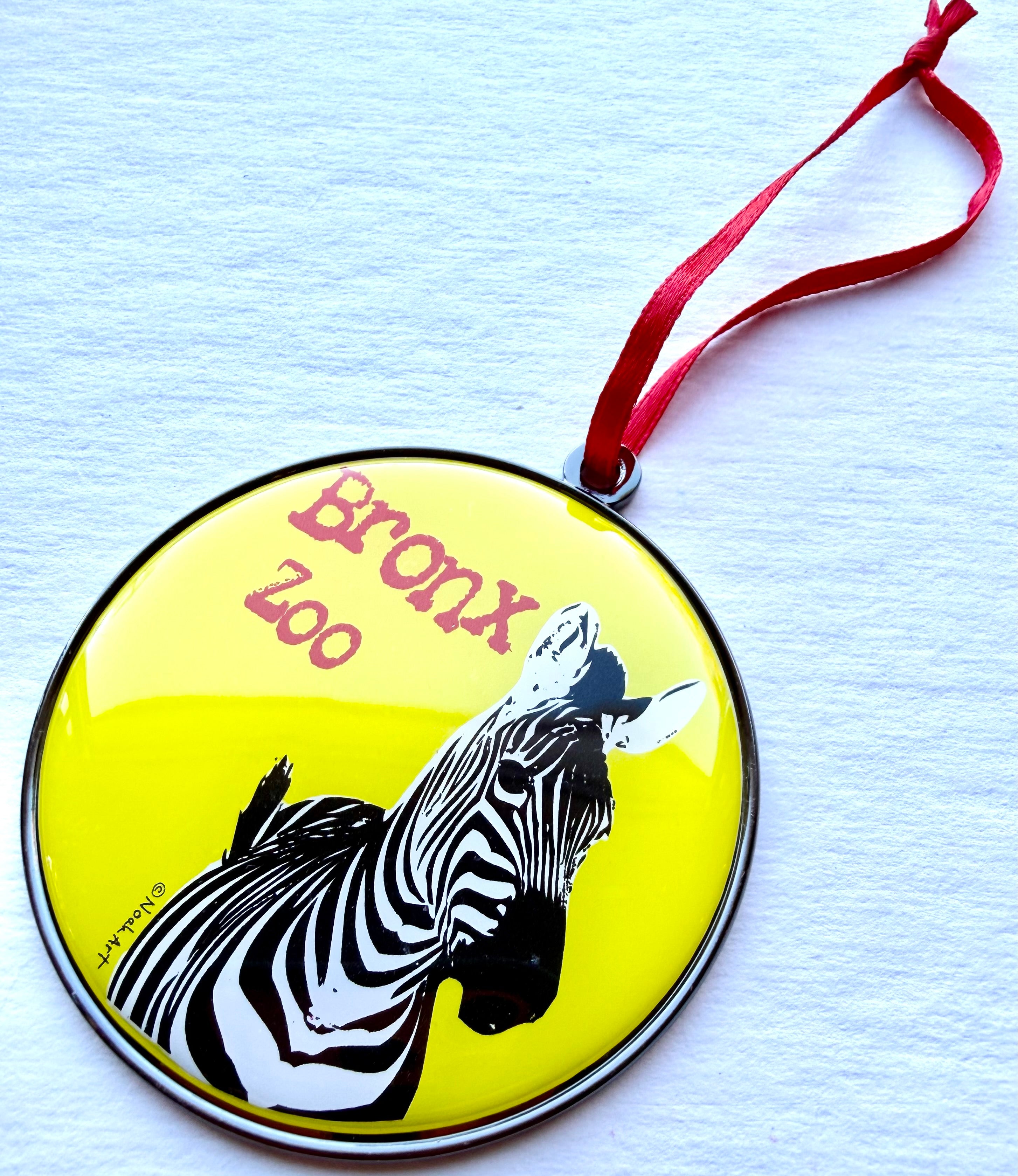 2.5" dome Custom Zoo Christmas ornament created by Noahart featuring customizable Zebra Zoo artwork. This ornament features a resin dome over brilliantly colored original artwork with a reflective chrome backing. It comes with an attached red ribbon for hanging. This...